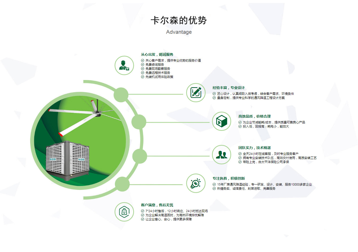 ??晉江市卡爾森機電設備有限公司是一家集設計、制作、銷售、安裝工業通風設備、中央空調、節能環保空調、脈沖除塵設備、環境凈化工程、等環保工程企業。并提供環境影響評價、環保工程總承包、環保工程設計、環保工程運營、環保工程成套設備等一站式服務。公司一直誠心服務于工業廠房的通風設施,我們的產品:“品種齊全、質量優越”。根據客戶的需求精心設計,高質量的制造,力求使每個產品都達到合理耐用、節能環保。科學的設計和精美高品質的產品,完善的服務系統,加強售前、售中、售后服務,對顧客在使用商品中出現的各種問題及時解決,使顧客無后顧之憂。產品廣泛適用于各類型制造業、機械類、五金冶煉、食品、化工、電子、紡織、噴涂、娛樂以及服務等場所。我們秉承“質理過關、價格合理、交期準時、服務周到”而受到新老客戶的好評和信賴。我們堅持“客戶至上、質量上乘”為宗旨,努力工作,為您換來潔凈美好的明天。卡爾森愿以過硬的質量,良好的信譽同各界朋友一起開創更加輝煌的未來。